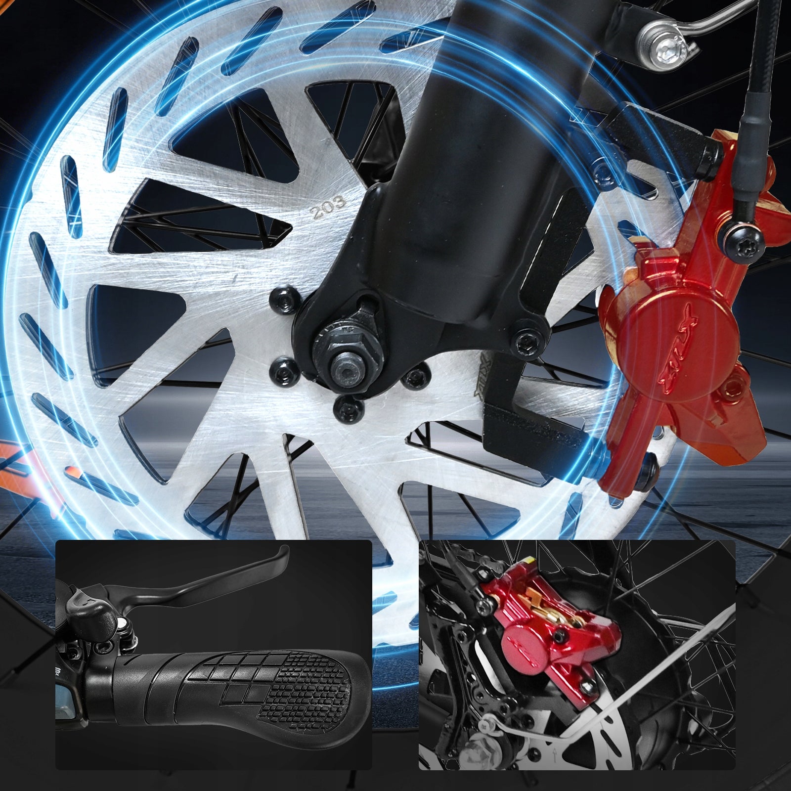 The 203mm brake pads are paired with an oil brake system to provide stronger braking performance. The brakes are sensitive and stable, and can stop quickly and safely even at high speeds or on steep slopes. It can adapt to a variety of complex road conditions and improve riding safety.