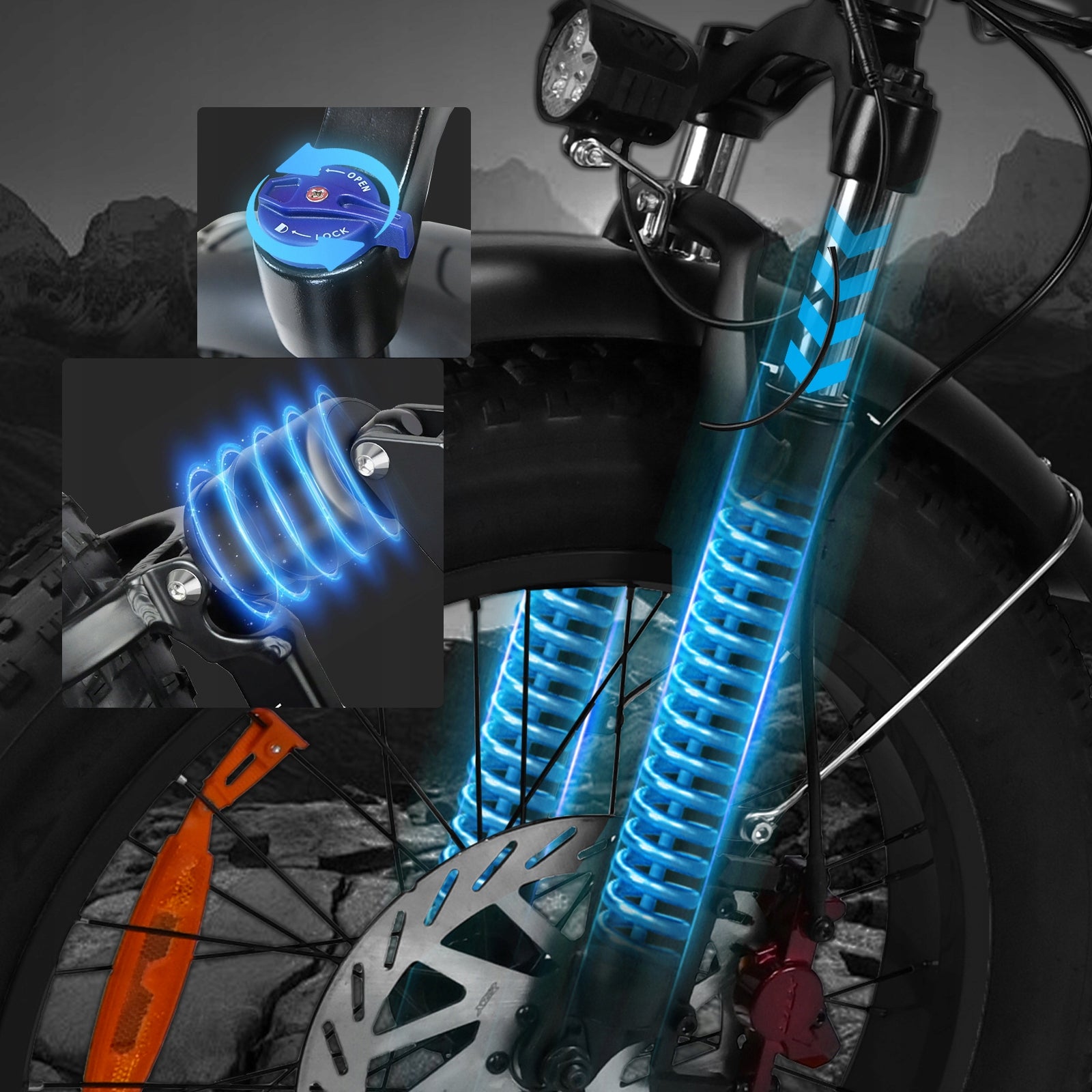The lockable hydraulic front fork can easily cope with various road conditions. When unlocked, it effectively absorbs vibrations and improves comfort; when locked, it enhances rigidity, improves climbing and high-speed riding efficiency, and brings a more stable and smooth riding experience.